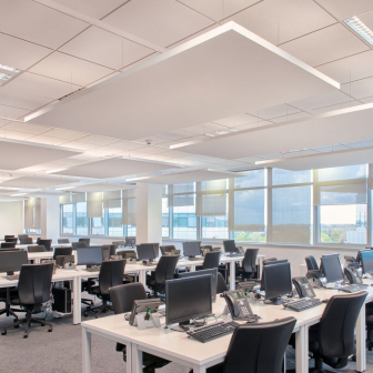 The OPTIMA L Canopy range provides a cost effective design solution for open areas providing excellent sound absorption and light reflectance.
