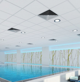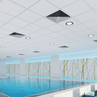 Newtone is hydrated calcium silicate ceiling tile suitable for use in areas subject to extremes of humidity and temperature.
